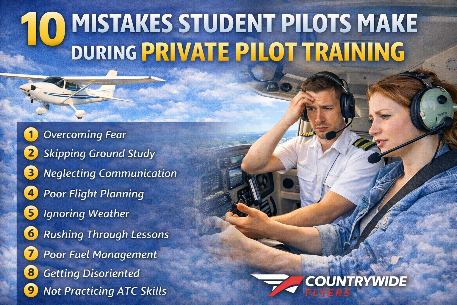 At Countrywide Flyers in Apopka, we work with student pilots at all stages of their training. Over time, instructors tend to see the same common mistakes appear again and again during private pilot training.